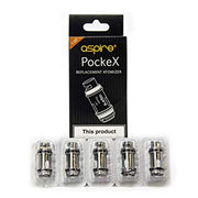 5-pack of replacement coils for the Aspire PockeX. Cross-compatible with the Nautlius X.